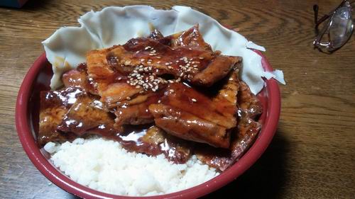 今朝のごはんは焼き肉丼だっと喜んだ三男が箸を持って食べようとした瞬間異変に気付きました(笑)