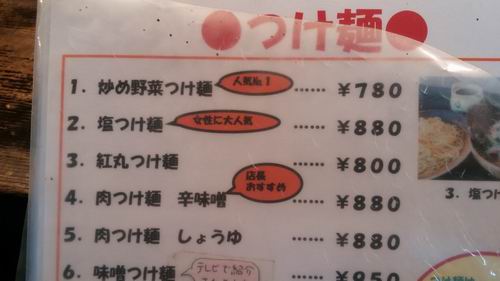 メニューを見ると様々なつけ麺が並んでいます。困った時の「人気№1メニュー」頼み。